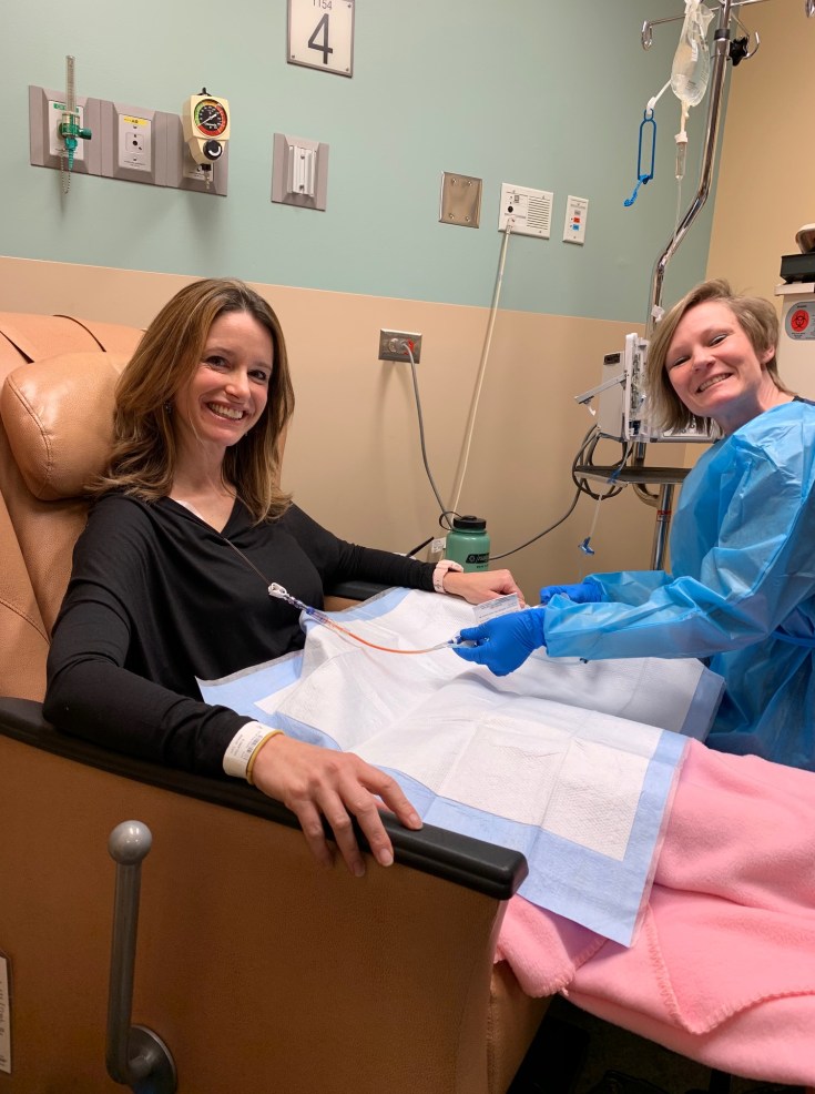 I woke from my bilateral mastectomy surgery feeling relieved and happy. The hard part was over! Ha! When I saw my husband, I asked what the surgeon had said. I didn’t think we would have any information about the status of my lymph nodes yet, I just wondered if she thought things went well. He averted my gaze and said something vague. I knew something was up so I asked again. His eyes welled up with tears and he said, “She could tell there were cancer cells in the sentinel lymph node because it was hard. We won’t know how many of the lymph nodes she extracted have cancer cells until the biopsy results come back. It means you need chemotherapy.” The surgeon came to see me the next day. “You will get through this” she said, as she explained that I was in for 5 months of chemotherapy. I needed four infusions of Anriamycin and Cytoxan (AC) and twelve infusion of Taxol (T). I don’t remember very much about my response, but I know there were lots and lots of tears. The thought of chemotherapy was so scary to me.
