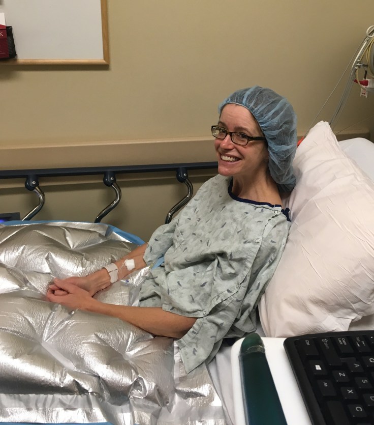 I was stoic and even cheerful in the pre-op room until they started to wheel me back to the OR. Then I started to weep. I remember the OR being so bright and all the sweet nurses saying “Hi Amy!” when they wheeled me in. I tried to explain through my tears that I was okay, but that I couldn’t stop crying. Then I heard, “we are going to give you something to relax” and, just like that, I was out.
